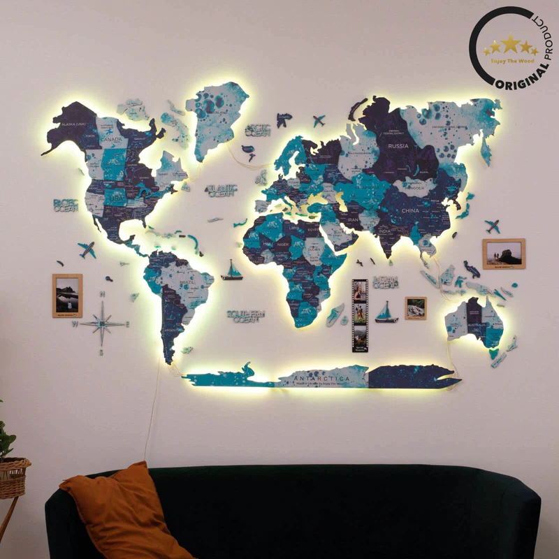 Crafted with eco-friendly, certified birch plywood and fiber wood, our 3D LED Wooden World Map is more than just a decoration - it's a travel planner and memory board. With easy installation that only takes a couple of hours, it's the perfect addition to light up any space. Available in multiple sizes, it makes for a great ready-to-gift item.